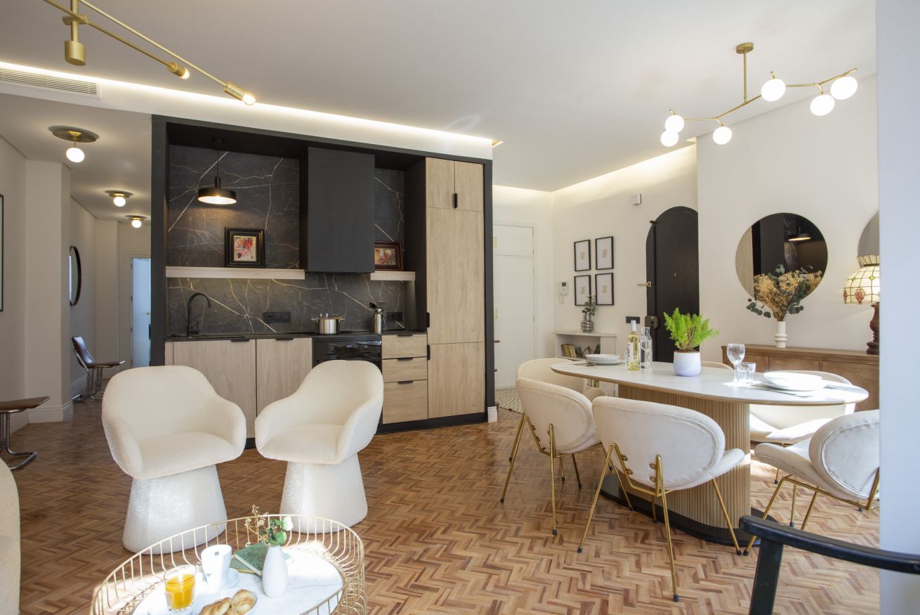 Discover the essence of Ruzafa in this exclusive apartment, where contemporary design and spaciousness come together to offer a first-class living experience. Located on the iconic Calle Denia, this 3-bedroom, 2-bathroom urban retreat has been designed for those seeking to experience Valencia’s most vibrant neighborhood in an environment of absolute privacy and sophistication. A spacious, open-concept home to enjoy with all five senses.