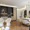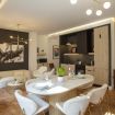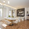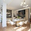 A spacious living-dining room with an open, integrated kitchen. A clean, functional space equipped with high-end appliances, ideal for group dinners in a stylish setting.